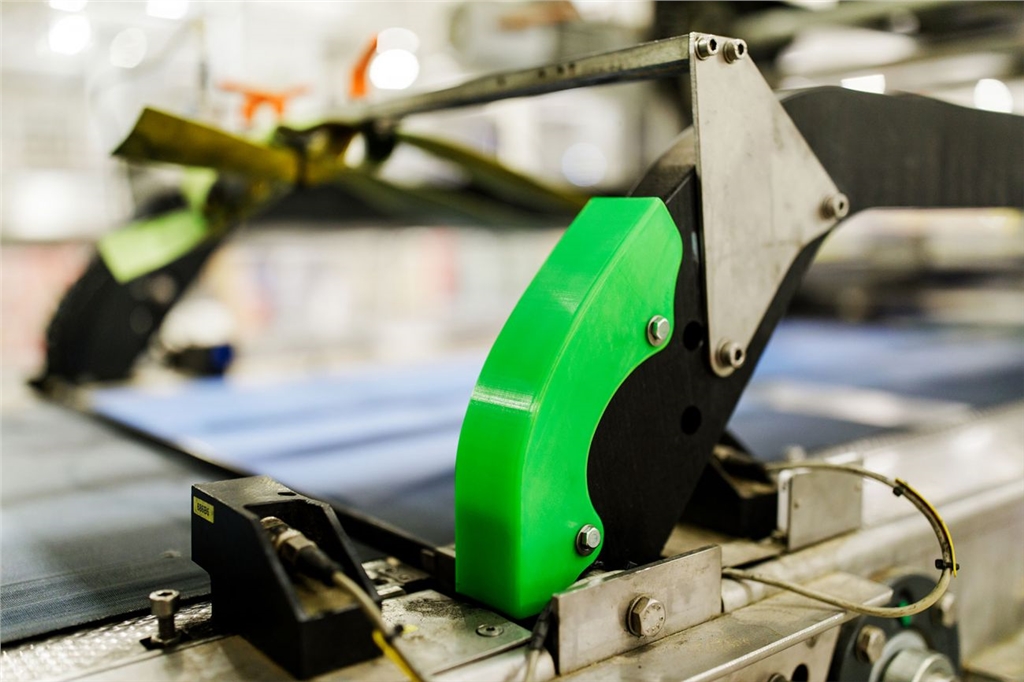3D列印的優(yōu)點(diǎn)在於自由更新設(shè)計(jì)、快速就地製造、測(cè)試替代零件、成品重量比金屬更輕且可根據(jù)強(qiáng)度需求選擇材料…等,例如:輸送帶上的品質(zhì)偵測(cè)器會(huì)敲打玻璃瓶,但經(jīng)常造成堵塞或?qū)⒑玫钠孔幼驳降厣稀V匦略O(shè)計(jì)的3D列印零件解決了這個(gè)問題,跳脫外包限制不但能節(jié)省製作成本,改善流程也變得更自由、更簡(jiǎn)單。