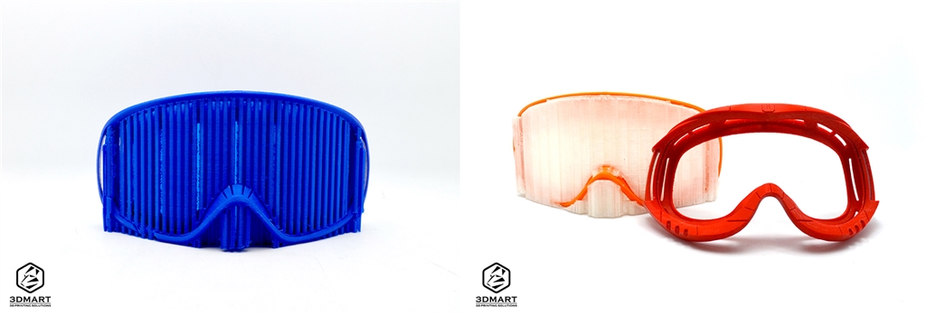 好處是這對(duì)於大面積的結(jié)構(gòu)影響不大、拆除也算方便,例如圖中的滑雪鏡框就可以用單噴頭系統(tǒng)製作懸空部分,不過(guò)表面的光滑度及美觀性會(huì)不如雙噴頭3D列印系統(tǒng)的表現(xiàn)。