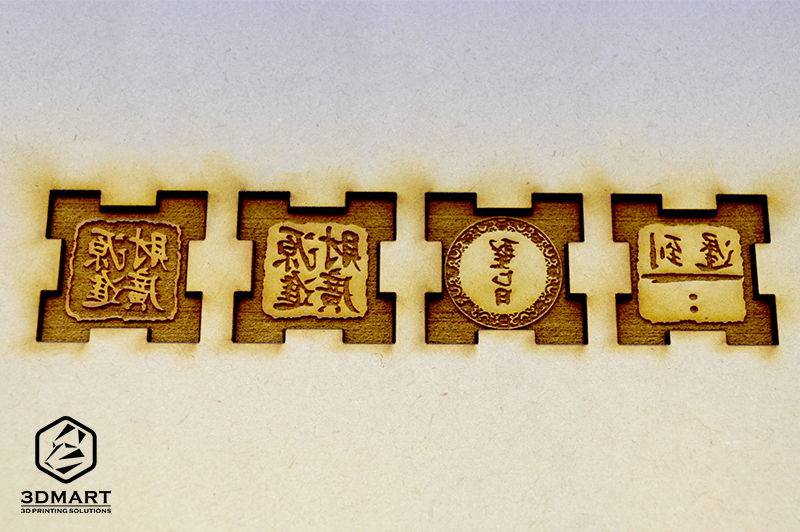 FLUX beambox在小尺寸2cm的印章上,雕刻出高解析度的效果、清楚呈現(xiàn)筆畫(huà)寬度只有1mm的毛筆字體,雷射切割拼圖結(jié)構(gòu)只需要1分鐘、雕刻印章也只花5分鐘就完工。
