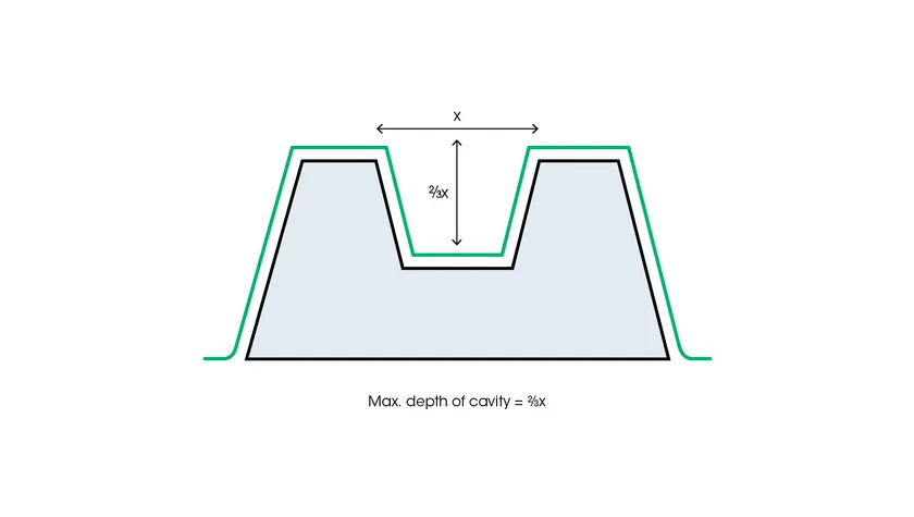 如果你的模板具有凹陷,那麼請確保凹陷的深度不超過其表面開口寬度的三分之二。如果更大最終部分表面變薄的風(fēng)險大大增加。