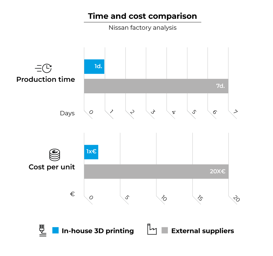 “增加附加值:產(chǎn)生低成本,但不產(chǎn)生高交付時(shí)間。我們很快就收回了投資。”- Enric Ridao,日產(chǎn)汽車(chē)巴塞隆納工廠的裝飾與底盤(pán)改善工程師。