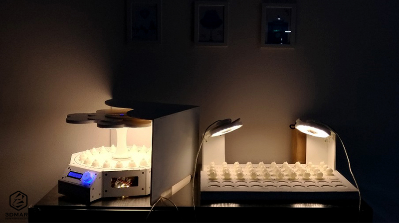 旁邊一一擺放的是角色的漸進動作(即動畫的單一「影格」),可以根據(jù)自己的喜好擺放觀看不同片段,透過自行放置及操作的過程為觀眾帶來參與感,自動閃燈變化的瞬間也令人非常驚喜。角色使用光固化進行3D列印,是在表面光滑度上最適合公仔製作的3D列印技術(shù)。(延伸閱讀:常見3D列印技術(shù)比較及整理)