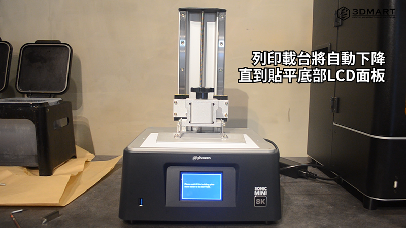在LCD面板放一張紙,點(diǎn)擊觸控螢?zāi)簧稀竄 Calib」後,列印平臺(tái)會(huì)自動(dòng)下降,直到貼平底部的LCD面板。