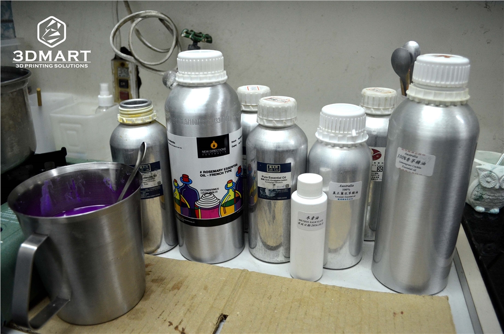 (7)蠟完全液態(tài)後冷卻至73度左右 (8)選擇你喜歡的精油兒~~~ (9)我們選用香茅精油均勻地與蠟攪拌