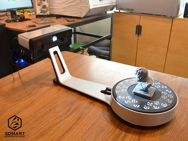 我們使用SP的固定掃描模式,3D掃描以光固化列印的「薩諾斯」,掃描時(shí)轉(zhuǎn)盤會(huì)自動(dòng)旋轉(zhuǎn)360度,只需要3分鐘就能完成掃描,在高速掃描的同時(shí)也兼顧了細(xì)節(jié)精度。