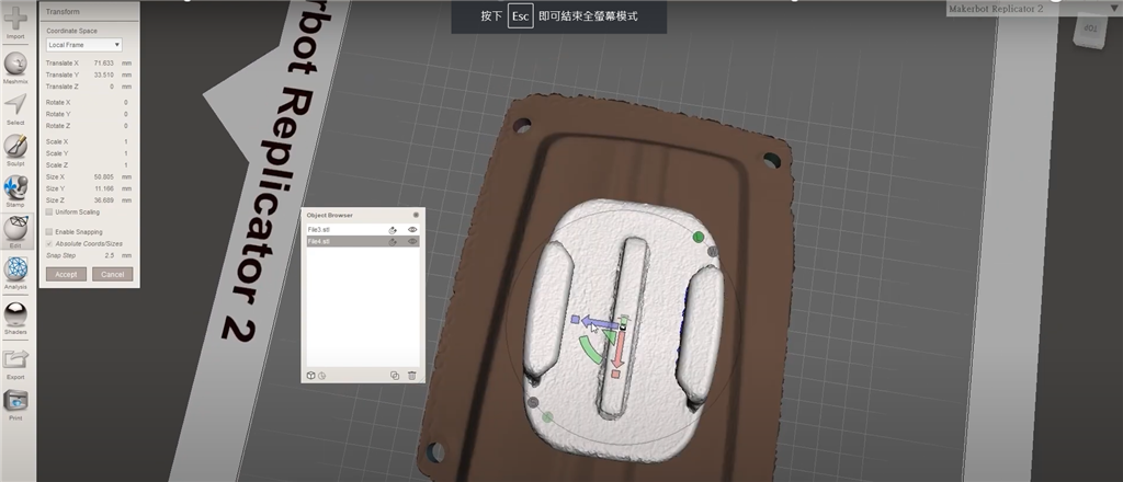 再透過(guò)Autodesk Meshmixer 將安全帽頂部配件與Gopro底座合成