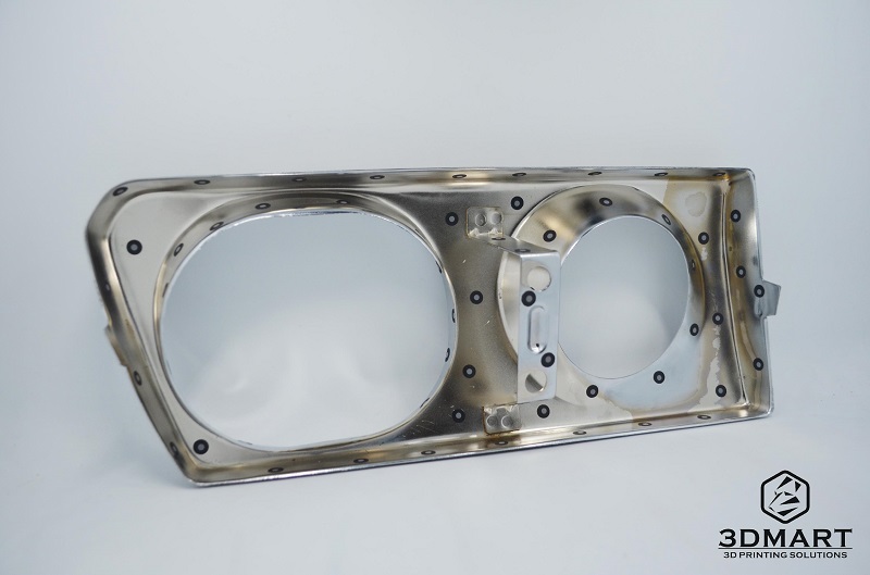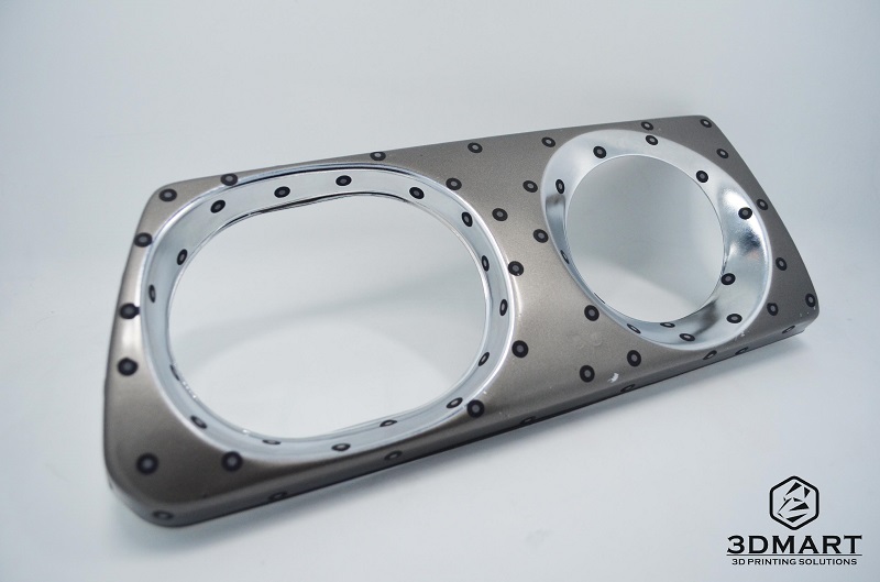 【3D掃描】後車燈金屬件掃描實(shí)測文 先前我們也用過3D掃描器掃描過機(jī)車車殼,不知道各位還有沒有印象? 車殼最讓人驚豔的就是背後細(xì)節(jié)度的呈現(xiàn),連接的細(xì)微孔洞都有非常完整的被掃描出來。 這次同樣的也將為各位介紹與車子相關(guān)的零件-汽車後車燈外殼, 首先來看看要掃描的物件造型吧,前方有兩個洞為放置車燈的區(qū)塊,在後方則是有多出一個把手的部分。 由於物件是金屬高反光的材質(zhì),因此我們需要先貼上掃描定位貼紙,貼完後再進(jìn)行噴粉。 掃描定位貼紙的在貼時要注意盡量不要讓它的位置太過規(guī)則,不要太整齊,點(diǎn)貼得越密集也更能掃出精準(zhǔn)的效果。 前面與背面記得都要貼好貼滿唷~ 經(jīng)過一段時間掃描後,完成的3D模型檔案