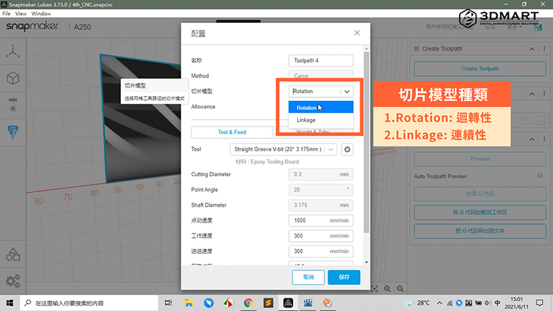 CNC雕刻的模型切片,主要有Rotation(迴轉(zhuǎn))、Linkage(連續(xù))兩種類(lèi)型。