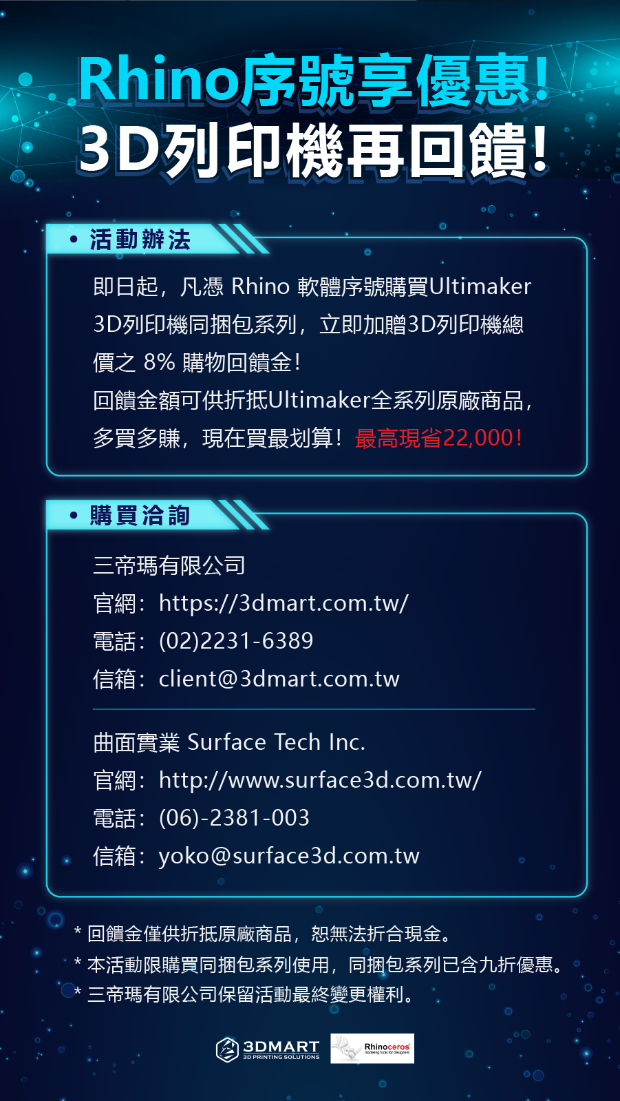 【3D列印優(yōu)惠】憑Rhino軟體序號,享購機回饋!