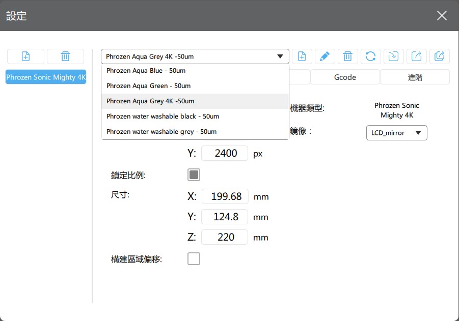 最後點(diǎn)選「切片」即可獲得模型切片檔,軟體運(yùn)算後會(huì)顯示詳細(xì)內(nèi)容,包含材料樹脂類型、列印時(shí)間;將檔案存入U(xiǎn)SB(附檔名需儲(chǔ)存為.ctb),在Phrozen Sonic Mighty 4K內(nèi)讀取後開始列印。