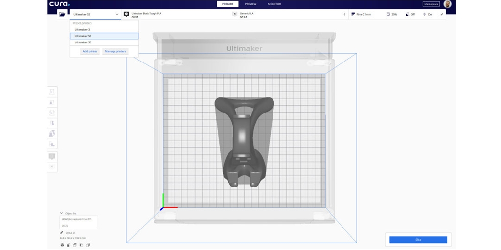 在新版Cura 4.3中能使用比之前更多的檔案格式,直接將CAD圖檔、3D掃描和3D模型檔集成到您的工作流程中,例如:Collada、GLTF、OpenCTM和PLY…等,還能從「Marketplace」下載更多外掛支援。