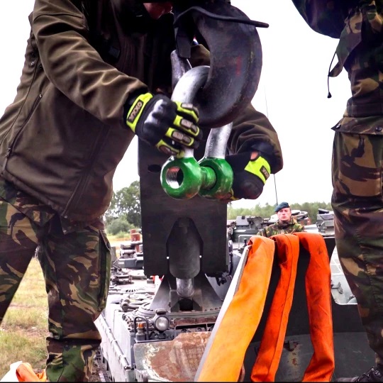2公斤的碳纖維強(qiáng)化尼龍連結(jié),被放在M113裝甲車和水牛起重機(jī)之間。金屬鋼環(huán)栓到最緊,四根電纜從下方的鉤子連接到坦克上。起重機(jī)慢慢開始向上移動,使電纜和3D列印連接處於最緊繃狀態(tài)。12噸重的坦克緩緩升起,懸掛在3D列印連接上。水牛號來回行駛,後退、前進(jìn)、甚至轉(zhuǎn)換方向,然而3D列印連結(jié)完美地?fù)瘟诉^來!這次3方合作得到非常成功的結(jié)果。