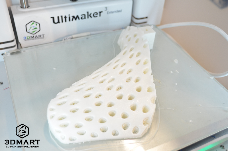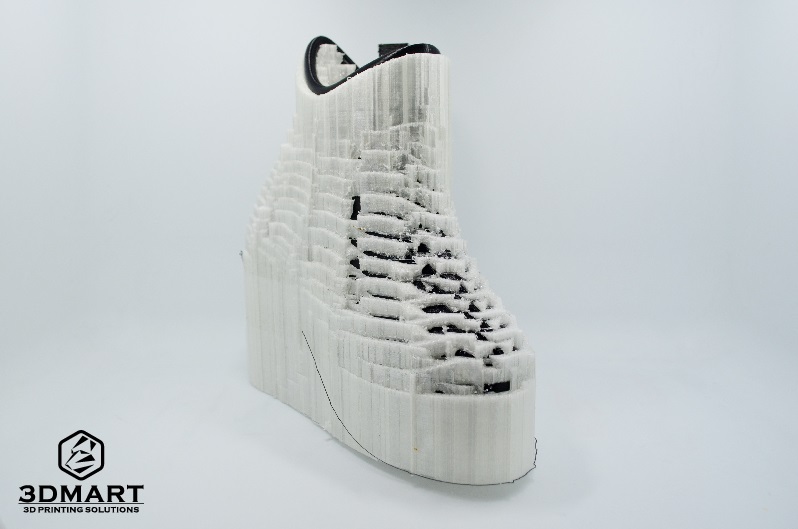 【3D列印應(yīng)用】新潮設(shè)計3D列印鞋款 3D列印的應(yīng)用方式非常多,像是公司開發(fā)商品原型時會利用3d列印技術(shù),有些學(xué)校也會使用3d列印機來輔助生產(chǎn) 教材或完成學(xué)生的設(shè)計想法。 這次3DMart收到來自大學(xué)的工業(yè)設(shè)計系學(xué)生的3d列印代工委託,幫助完成他們的設(shè)計構(gòu)想,他們剛好都是設(shè)計鞋 款,各具不同的特色,我們將於此篇文章向大家介紹他們的設(shè)計歷程。 第一個的黃色設(shè)計款女用鞋是李同學(xué)的作品,主要是為了畢業(yè)專題所製作的作業(yè),設(shè)計的靈感結(jié)合樹根、骨骼密度 的造型以及網(wǎng)狀的血管,是一款十分優(yōu)雅的新穎設(shè)計女士鞋款,鎖定25-35歲具時尚感的輕熟女族群 李同學(xué)表示會使用3d列印技術(shù)完成此鞋款,是因為此鞋子模型在造型上很複雜並且要求高細(xì)緻度,在製程上面選擇 3d列印機印製也比較簡單,並且在最終完成度也很高。 由於設(shè)計上有許多鏤空的部分,必須使用Ultimaker3雙噴嘴3d列印機,讓PLA搭配水溶性支撐材PVA,不須擔(dān)心有 拆不完的支撐以及支撐拆除後的粗糙表面。 在Cura的設(shè)定上我們盡可能地將PVA的用量調(diào)至最低,避免材料的浪費並節(jié)省泡水的時間,總共的列印時間約為2天。 圖為正在3D列印的黃色女用鞋 (列印層厚:0.15mm 填充率:30%) 這次決定設(shè)計鞋子作為畢業(yè)製作是來自老師的提議,由於聯(lián)合大學(xué)工設(shè)系所在工專時期是以鞋子設(shè)計為主要項目, 後來才轉(zhuǎn)變?yōu)橐援a(chǎn)品設(shè)計為主,此次有種想重拾初衷再次挑戰(zhàn)過去鞋子設(shè)計的強項。