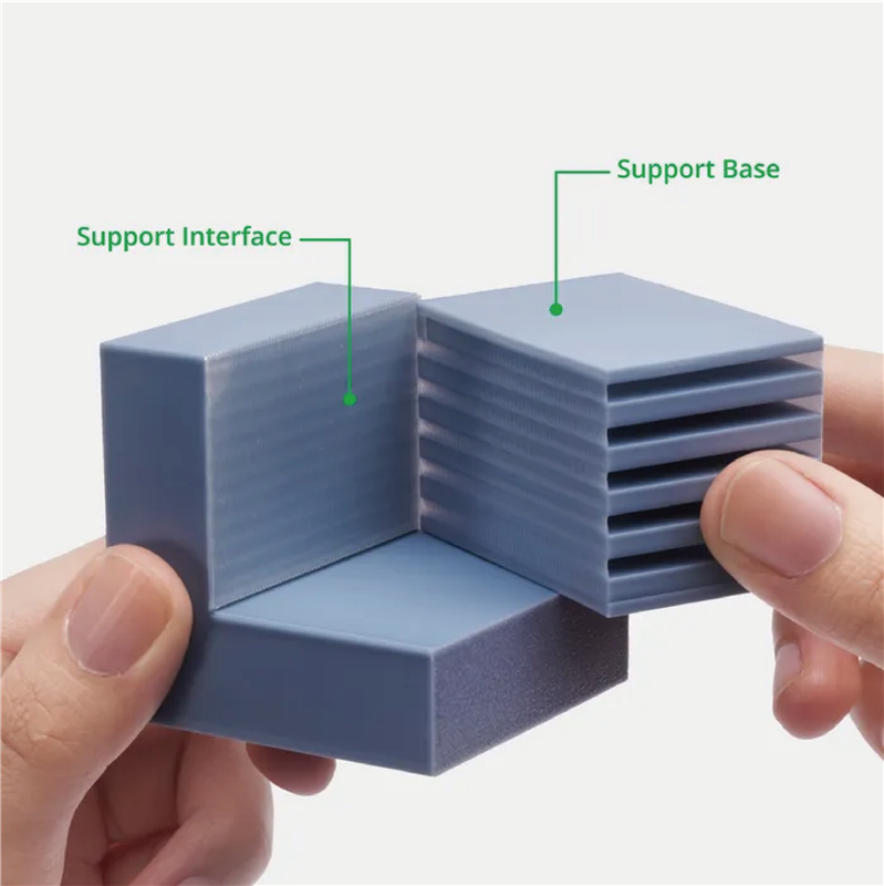 支撐 PLA/PETG 在接觸區(qū)域提供一致的光滑表面質(zhì)量,確保對複雜細(xì)節(jié)的最佳支撐。