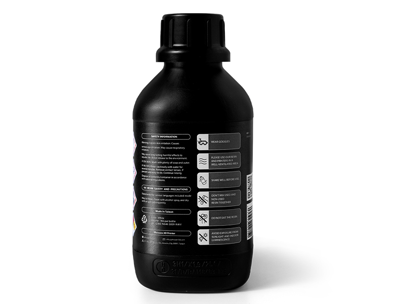 • 使用後的樹脂,請保存於不透光瓶罐內(nèi),並避免和新料混合。