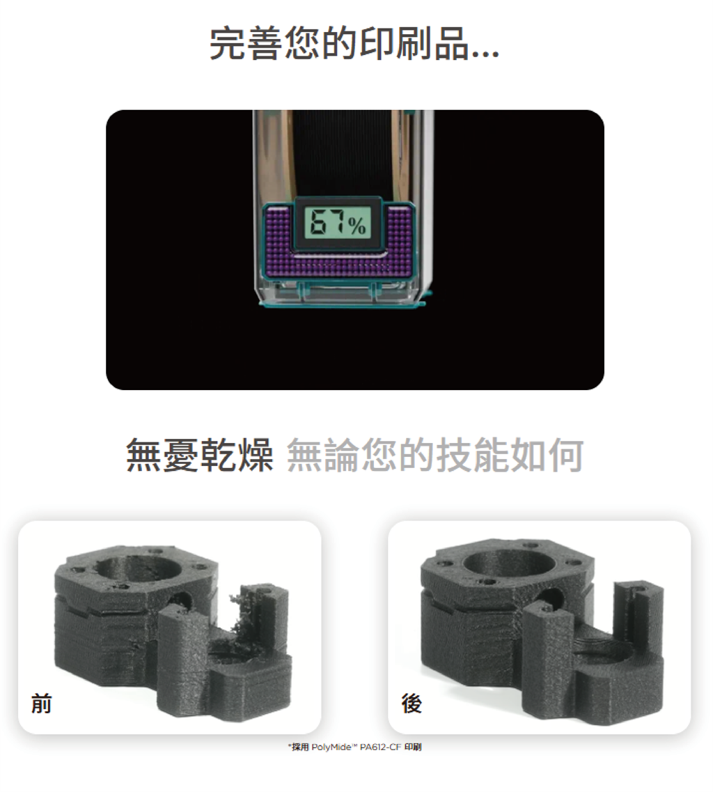 PLA / PVB / PETG / ABS / ASA / TPU / PA / PC / PVA / PolySupport™ / PolySupport™ 用於 PA12 |