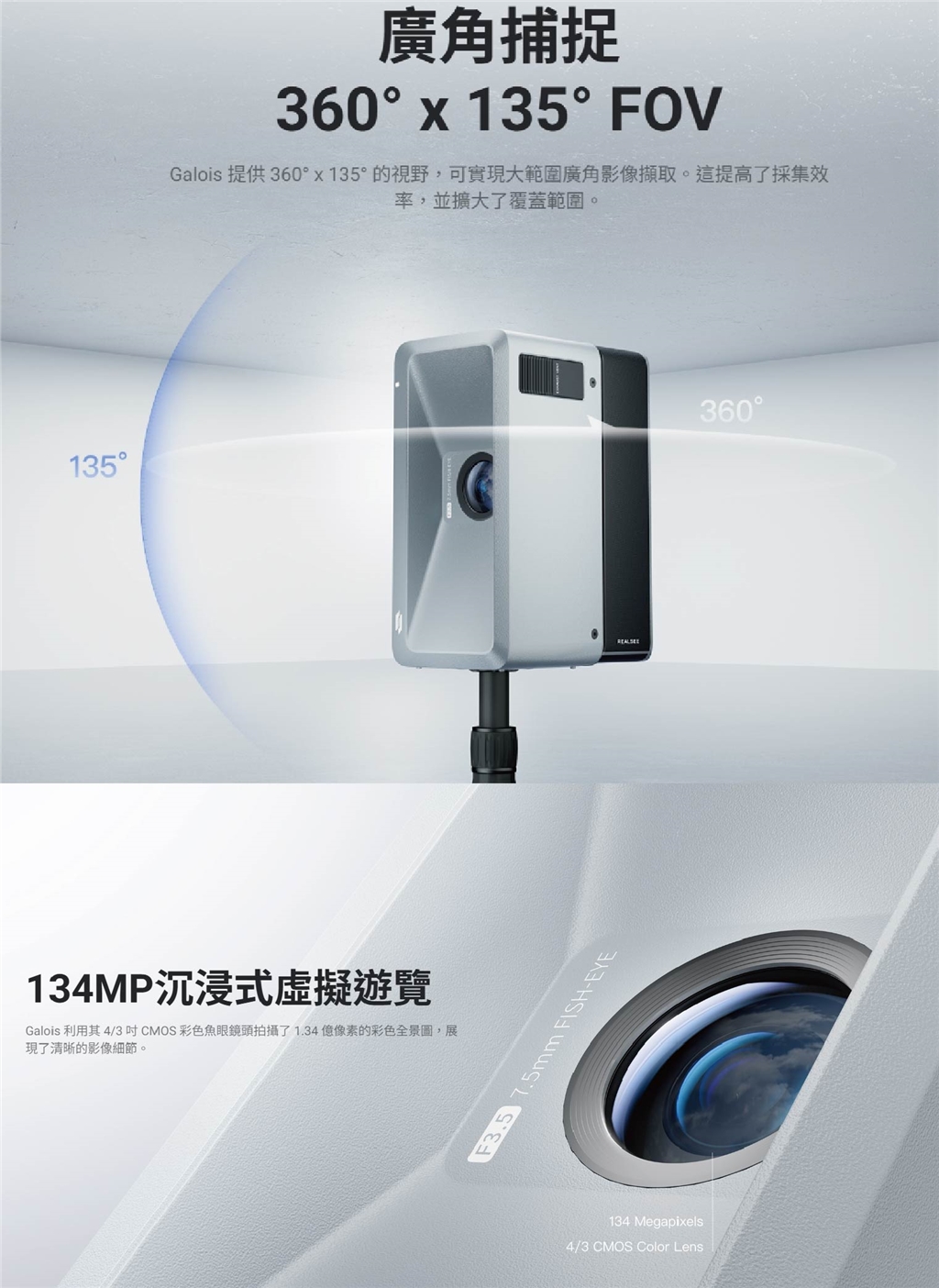 全景:16384 × 8192 像素,360° × 135° 視野