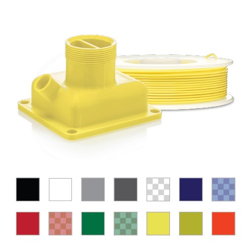 Ultimaker PETG 是一種聚對苯二甲酸乙二酯 (PET) 的乙二醇改性材料,具有潤滑劑、機油、酒精、酸鹼的耐化學(xué)性,可以承受高程度的磨損、化學(xué)腐蝕性和高達(dá)76°C的高溫;有14種不同性質(zhì)、顏色,適合用於不同的工業(yè)環(huán)境,包含常見的紅、橙、黃、綠、藍(lán)等基本色,還有半透明、螢光的特殊色,選擇非常多樣!