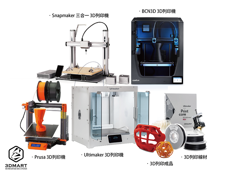 FDM是最普遍的3D列印技術(或稱FFF),其3D列印原料通常是在捲軸上輸送的熱塑性聚合物,通稱為線材;線徑寬度公定為1.75mm或3mm(或2.85mm),再透過加熱噴頭擠出。加熱噴頭安裝在移動桿上,讓噴頭的擠出材料可以在列印範圍內(nèi)層層堆疊、冷卻並固化於平臺上以完成物體。三帝瑪主要有Ultimaker、BCN3D、Prusa、Snapmaker...等品牌系列的FDM熱熔堆疊3D列印機。