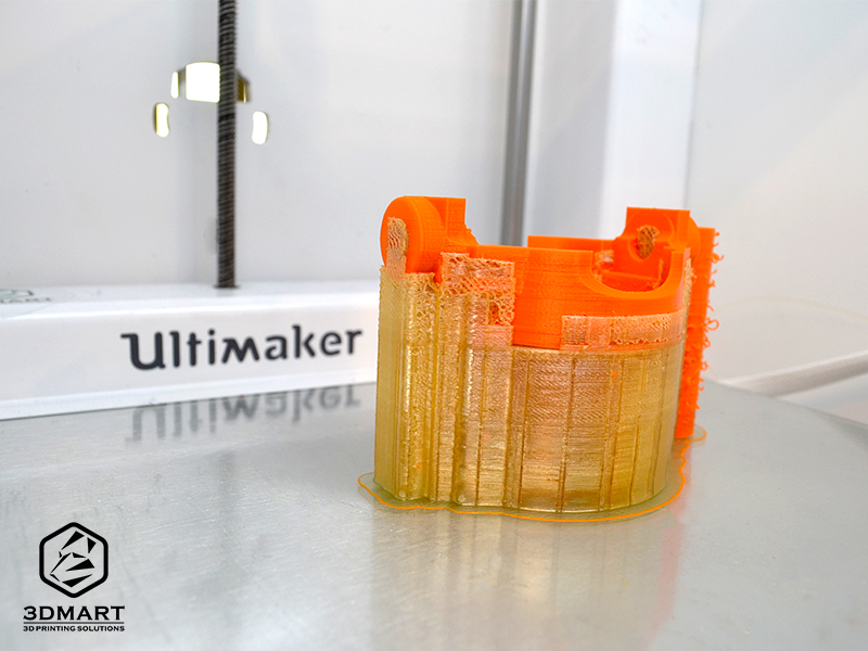 (圖為Ultimaker 3D列印機搭配AquaSys水溶性支撐線材,3D列印物件內(nèi)部支撐。)